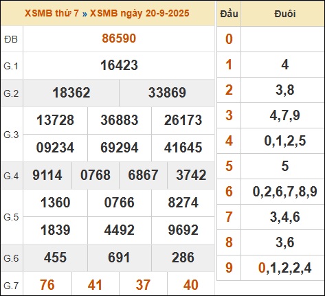 Xem lại kết quả xổ số miền Bắc ngày 20/09/2025 hôm qua