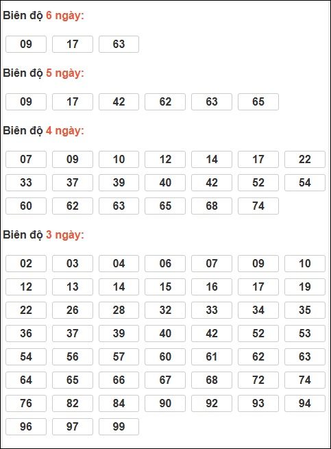 - Kỳ trước có loto: 79 ⇒ Thống kê loto hay về: 69