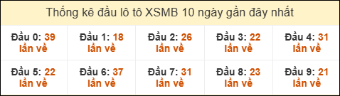 Thống kê tần suất đầu lô tô MB ngày 22/10/2025