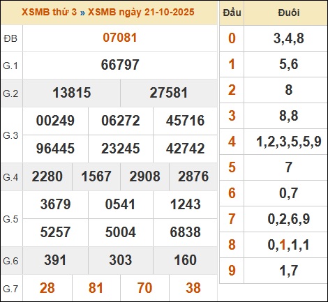 Dựa vào bảng xổ số Miền Bắc đã về ngày 21/10/2025, chuyên trang mời bạn tham khảo thống kê phân tích kết quả chi tiết sau đây: