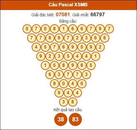 Phân tích kết quả xổ số Miền Bắc 22/10 dựa vào tam giác Pascale (được tính theo kết quả: giải Đặc Biệt và giải Nhất):