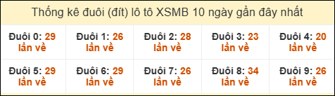 Thống kê tần suất đuôi lô tô Miền Bắc đến ngày 25/10/2025