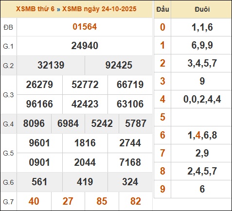 Dựa vào bảng kết quả xổ số Miền Bắc 24/10/2025 bên trên, chuyên trang mời bạn xem thống kê kết quả chi tiết sau đây: