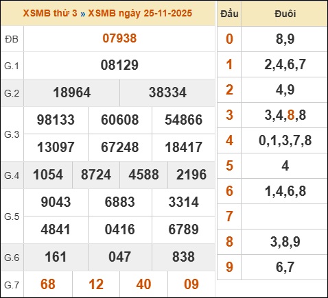 Xem kết quả xổ số miền Bắc 25/11/2025 hôm qua