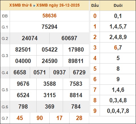 Thống kê XSMB hôm trước ngày 26/12/2025