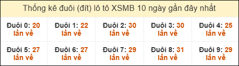 Thống kê tần suất đuôi lô tô Miền Bắc đến ngày 31/10/2025