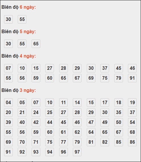 - Bảng kết quả có 65 ⇒ Thống kê loto về nhiều: 35