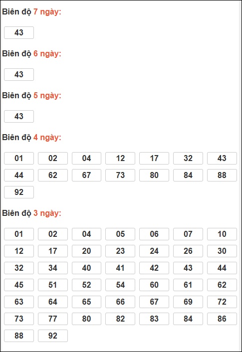 ⚡ 2 số cuối GĐB về nhiều nhất trong 30 ngày: 14, 43, 79, 86, 38