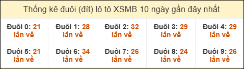 Thống kê tần suất đuôi lô tô Miền Bắc đến ngày 05/11/2025