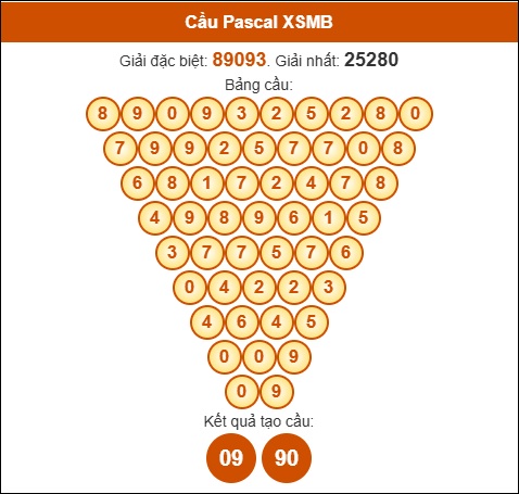 Cầu Pascale xổ số Miền Bắc 07/09/2025