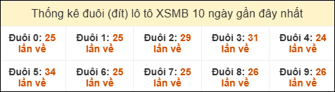 Thống kê tần suất đuôi lô tô Miền Bắc đến ngày 07/09/2025
