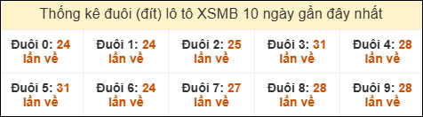 Thống kê tần suất đuôi loto MB đến ngày 09/09/2025