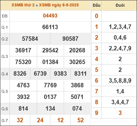 1. ✔️Xem lại bảng KQXSMB hôm qua 08/09/2025