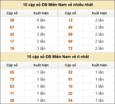 ⚡ 10 cặp số ĐB Miền Nam về nhiều nhất/ ít nhất tính đến ngày 01/11/2025: