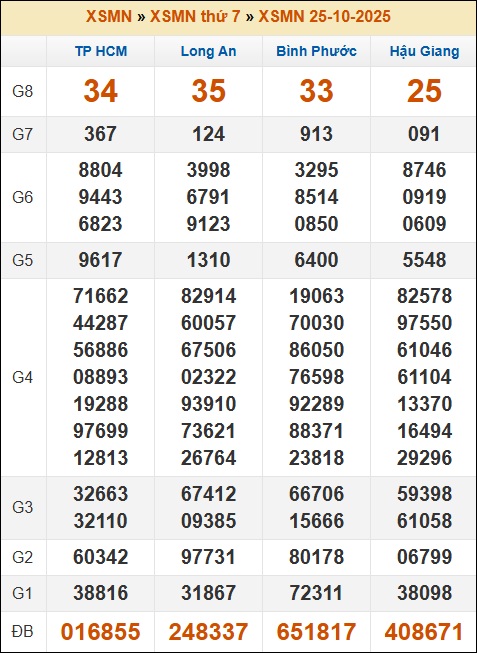 Kết quả xổ số Miền Nam 25/10/2025 thứ 7 tuần trước