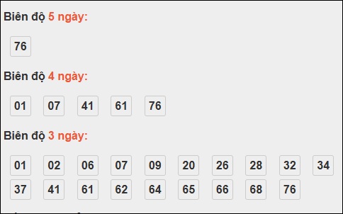 Đuôi 2: 5 ngày, Đuôi 4: 5 ngày, Đuôi 3: 4 ngày, Đuôi 5: 3 ngày, Đuôi 6: 2 ngày