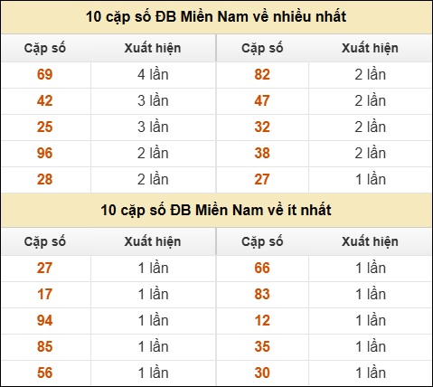 ⚡ 10 cặp số ĐB Miền Nam về nhiều nhất/ ít nhất tính đến ngày 10/10/2025: