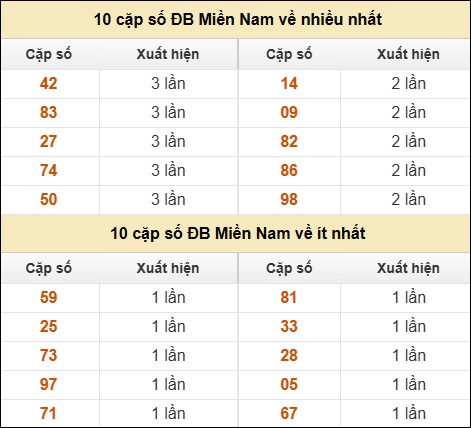 ⚡ 10 cặp số ĐB Miền Nam về nhiều nhất/ ít nhất tính đến ngày 11/9/2025: