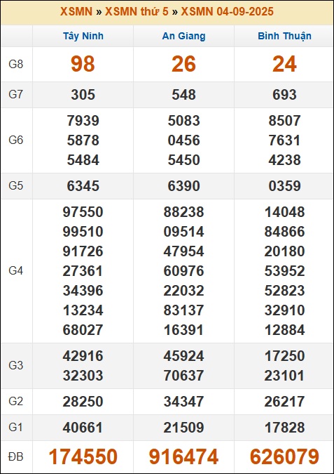Bình luận kết quả kỳ trước, từ đó nhận định xổ số miền Nam 11/9/2025 hôm nay gồm 3 tỉnh: Tây Ninh, An Giang, Bình Thuận.