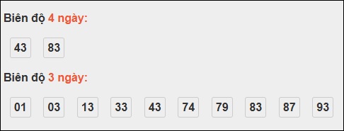 Đầu 1: 6 ngày, Đầu 8: 4 ngày, Đầu 9: 4 ngày, Đầu 0: 3 ngày, Đầu 7: 3 ngày