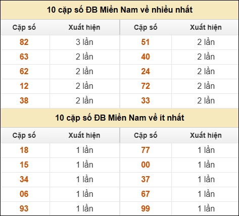 ⚡ 10 cặp số ĐB Miền Nam về nhiều nhất/ ít nhất tính đến ngày 12/10/2025: