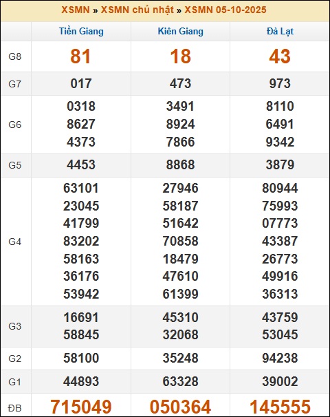 Kết quả xổ số Miền Nam 5/10/2025 chủ nhật tuần trước