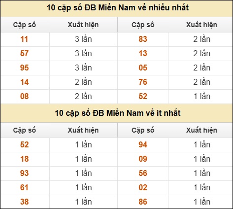 ⚡ 10 cặp số ĐB Miền Nam về nhiều nhất/ ít nhất tính đến ngày 12/02/2026: