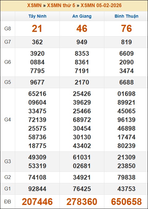 Kết quả xổ số Miền Nam 05/02/2026 thứ 5 tuần trước