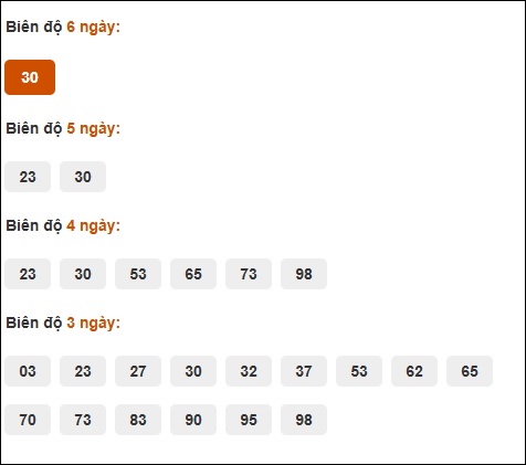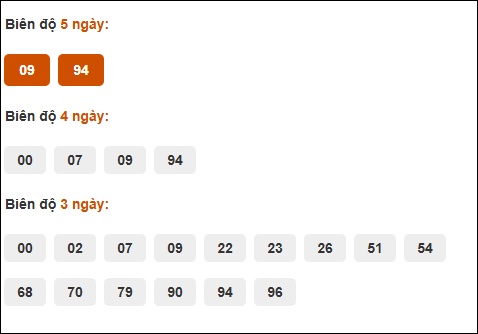 Đuôi 1: 10 ngày, Đuôi 0: 8 ngày, Đuôi 4: 5 ngày, Đuôi 7: 5 ngày, Đuôi 3: 3 ngày