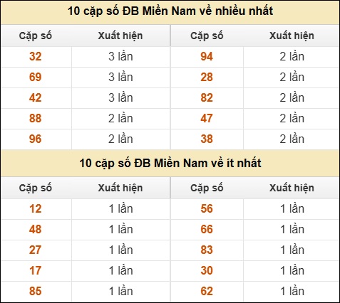 ⚡ 10 cặp số ĐB Miền Nam về nhiều nhất/ ít nhất tính đến ngày 12/09/2025:
