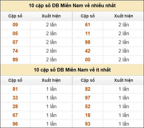 ⚡ 10 cặp số ĐB Miền Nam về nhiều nhất/ ít nhất tính đến ngày 13/11/2025: