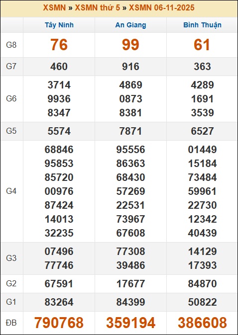 Kết quả xổ số Miền Nam 06/11/2025 thứ 5 tuần trước