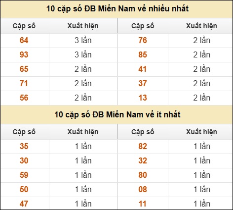 ⚡ 10 cặp số ĐB Miền Nam về nhiều nhất/ ít nhất tính đến ngày 13/02/2026: