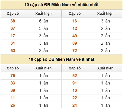 ⚡ 10 cặp số ĐB Miền Nam về nhiều nhất/ ít nhất tính đến ngày 15/11/2025: