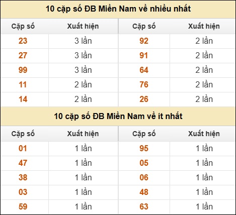 ⚡ 10 cặp số ĐB Miền Nam về nhiều nhất/ ít nhất tính đến ngày 15/12/2025: