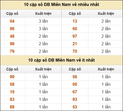 ⚡ 10 cặp số ĐB Miền Nam về nhiều nhất/ ít nhất tính đến ngày 16/12/2025: