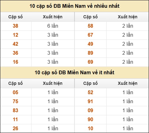 ⚡ 10 cặp số ĐB Miền Nam về nhiều nhất/ ít nhất tính đến ngày 18/10/2025: