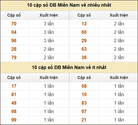 ⚡ 10 cặp số ĐB Miền Nam về nhiều nhất/ ít nhất tính đến ngày 18/11/2025: