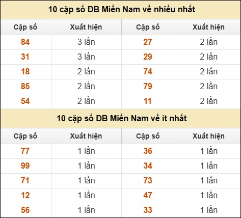 ⚡ 10 cặp số ĐB Miền Nam về nhiều nhất/ ít nhất tính đến ngày 19/04/2026: