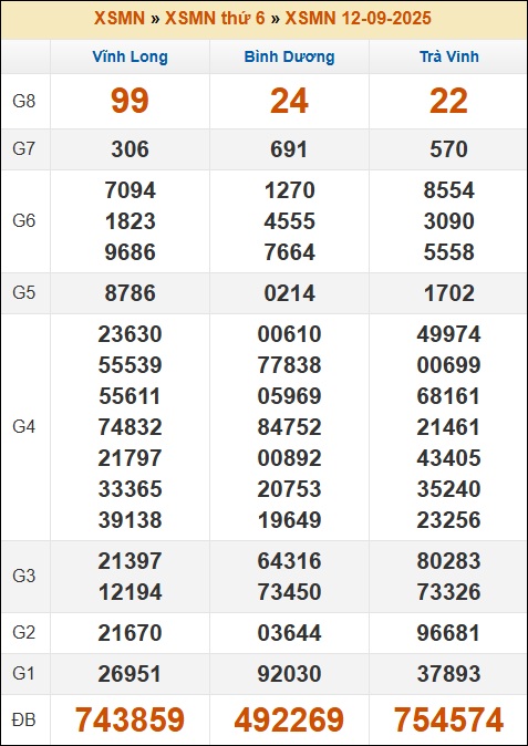 Kết quả xổ số Miền Nam ngày 12/09/2025 thứ 6 tuần trước