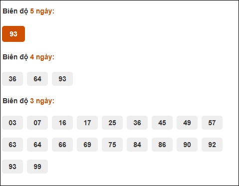 Đuôi 5: 9 ngày, Đuôi 3: 5 ngày, Đuôi 6: 4 ngày, Đuôi 8: 4 ngày, Đuôi 4: 3 ngày