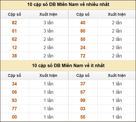 ⚡ 10 cặp số ĐB Miền Nam về nhiều nhất/ ít nhất tính đến ngày 02/11/2025: