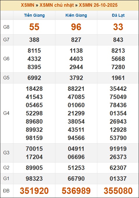 Kết quả xổ số Miền Nam 26/10/2025 chủ nhật tuần trước