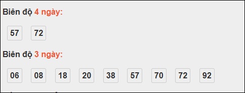 Đuôi 6: 15 ngày, Đuôi 3: 6 ngày, Đuôi 2: 4 ngày, Đuôi 8: 4 ngày, Đuôi 4: 3 ngày
