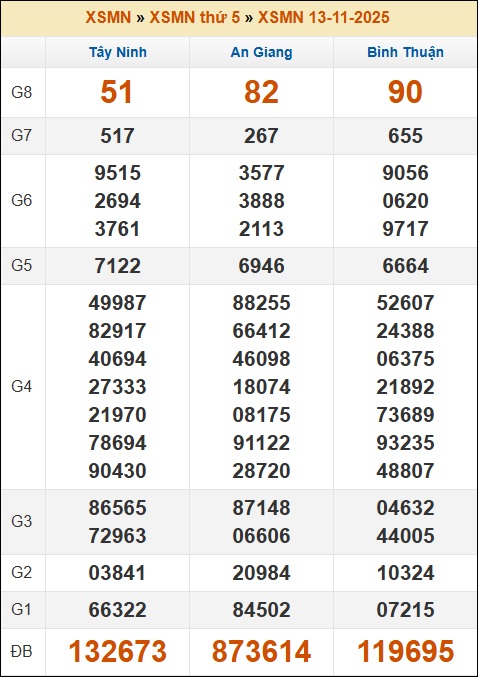 Kết quả xổ số Miền Nam 13/11/2025 thứ 5 tuần trước