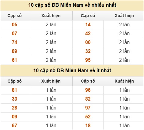 ⚡ 10 cặp số ĐB Miền Nam về nhiều nhất/ ít nhất tính đến ngày 20/11/2025: