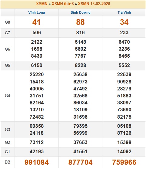 Kết quả xổ số Miền Nam ngày 13/02/2026 thứ 6 tuần trước