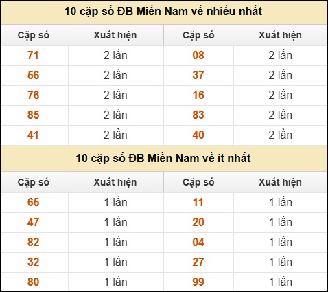 ⚡ 10 cặp số ĐB Miền Nam về nhiều nhất/ ít nhất tính đến ngày 20/03/2026: