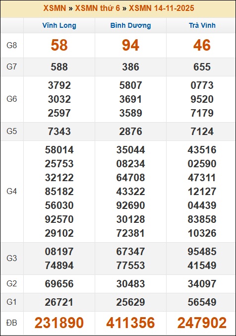 Kết quả xổ số Miền Nam ngày 14/11/2025 thứ 6 tuần trước