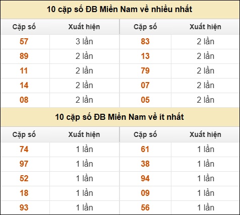 ⚡ 10 cặp số ĐB Miền Nam về nhiều nhất/ ít nhất tính đến ngày 22/01/2026: